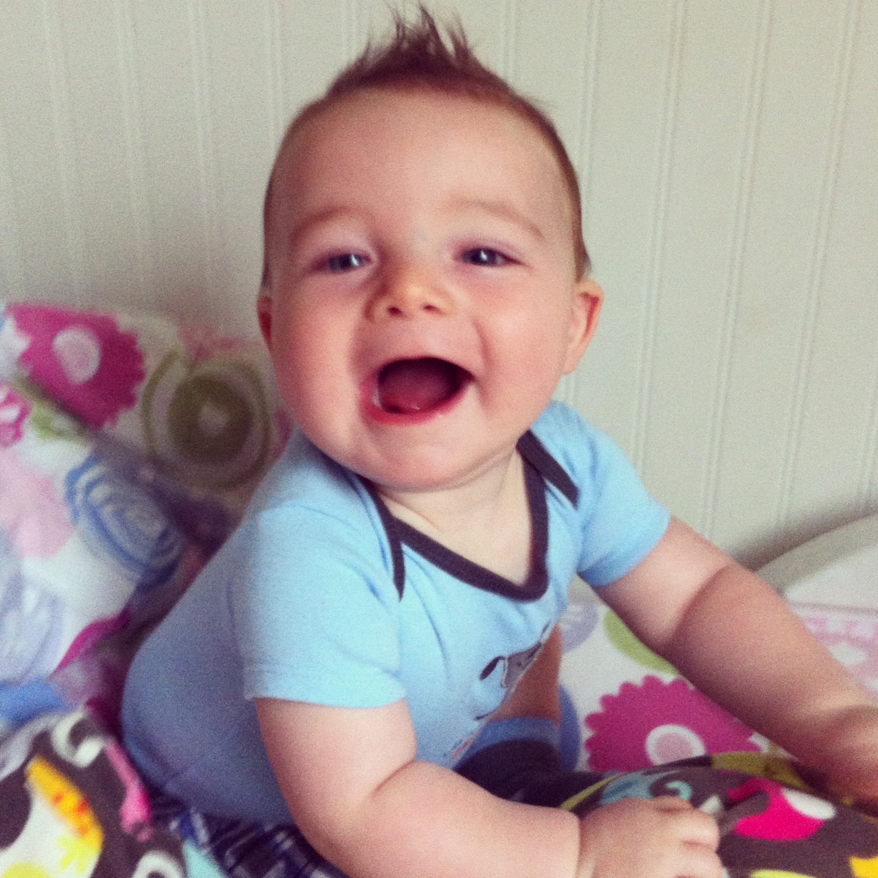Carson is crawling!  (Well, it's more like scooting but I think it counts!)  Look out world, here comes Carson!